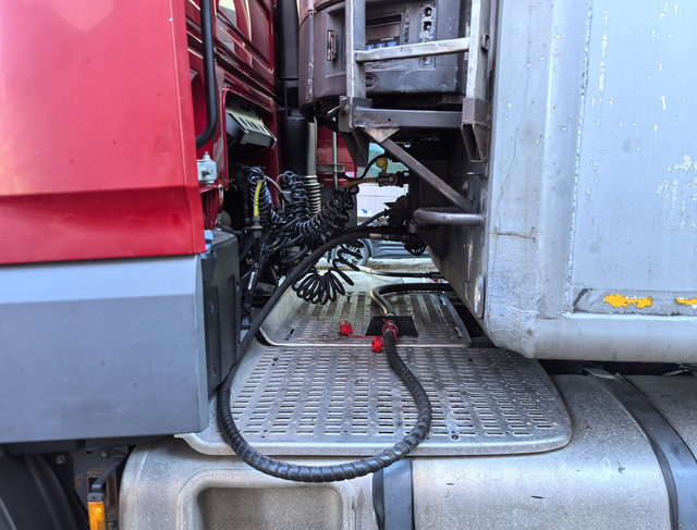 - Диагностика и подготовка. Специалисты осмотрели тягача DAF и определили оптимальную схему монтажа. Затем команда начала подбор комплектующих, учитывая нагрузку и тип прицепа.