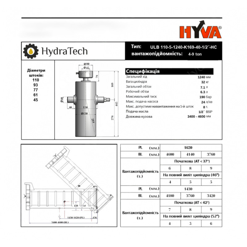 Гидроцилиндр Hyva ULB 110-5-1240-K169-40-1/2-HC
